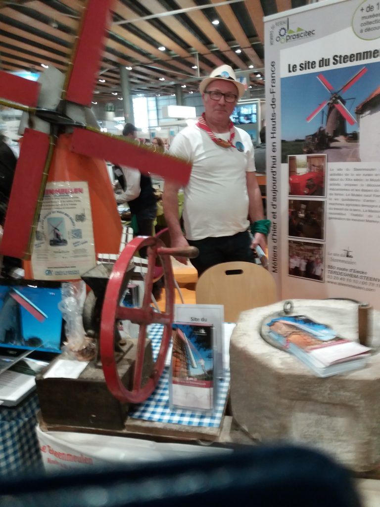 Quelques clichés des amis du Steenmeulen présents sur le stand Proscitec Patrimoines et Mémoires des Métiers pour représenter l’association et présenter le site touristique aux visiteurs du Salon du tourisme de Lille Ce Week-End !